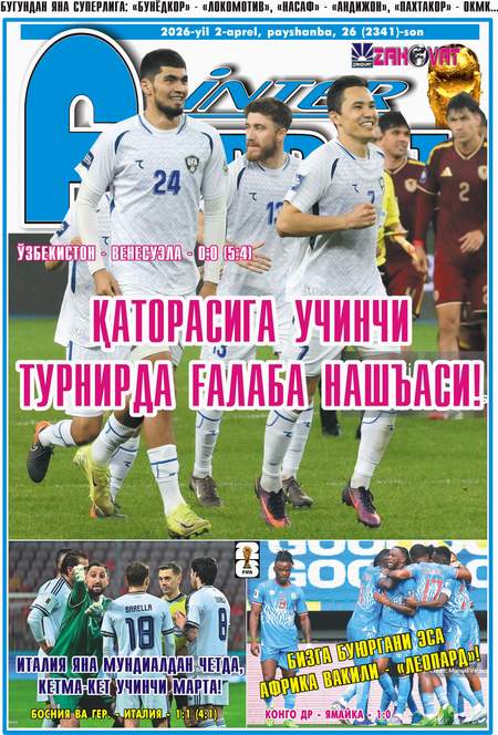 Тан олиш керак, миллий термамиз Дон Фабио қўл остида кетма-кет чиройли ўйинлар кўрсатмоқда. Ва албатта халқаро турнирда ўз мухлисларинг олдида зафар қучиш гашти ҳам ўзгача. Айтганча, ЖЧ-2026 нинг барча иштирокчиларининнг номлари ҳам тайин бўлди. Шундан бўлса керак, газетамизнинг ушуб сонида Сиз азизларга манзур бўладиган қатор қизиқарли мақолаларни ўқишингиз мумкин. Мисол учун,…