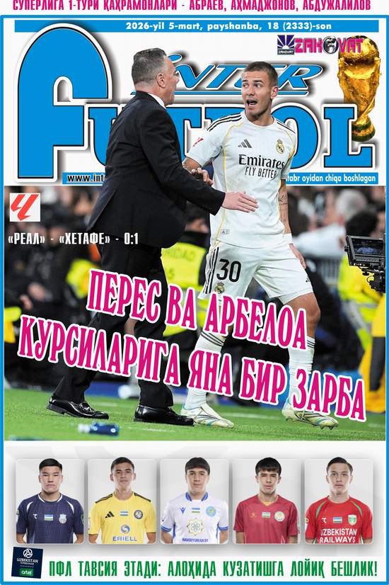 Сизга яхши маълумки, голларга бой кечган Суперлиганинг 1-туридан сўнг кеча 2-турга ҳам старт берилди. ТОП-2 миллий чемпионтлари бўлмиш АПЛ ва Ла лигада чемпионлик учун курашлар “ўзгарувчанлиги” сақлананиб  қолаётир. “Реал”да яна бир маъносиз мағлубият, “Сити”да эса тушунарсиз дуранг натижалар қайд этилди. Шундан бўлса керак,  газетамизнинг мазкур сонида Сиз азизларга манзур бўладиган қатор қизиқарли мақолалар чоп этилди. Мисол учун…