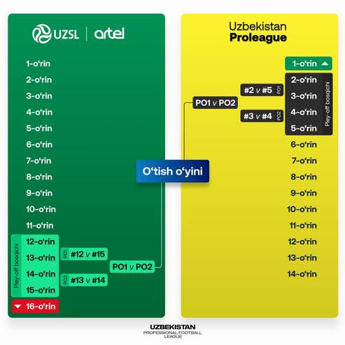 “Пролига регламенти”га кўра, мусобақа ғолиби Суперлигага тўғридан-тўғри йўлланмани қўлга киритади. Қолган яримта ўрин учун эса якунда 4 та клуб кураш олиб бориши белгилаб қўйилган. Яъни, мусобақа якунига етгач, 2, 3, 4, 5-ўрин эгалари плей-офф босқичи доирасида майдонга тушади. Бу ўз ўзидан 5-йўлланма учун ҳам кураш кечишини билдиради. Боиси, мавсумни 5-ўринда якунлаган клубда ҳам назарий жиҳатдан Суперлигага йўл олиш имконияти сақлаб қолинади. Мавсумнинг сўнгги — 26-тур ўйинлари 7-8 ноябрь кунларига тўғри келади. 9-17 ноябрь саналари ФИФА кунлари сифатида белгилаб қўйилган. Шундан келиб чиқиб, плей-офф босқичининг биринчиси 24-25 ноябрь кунлари ўтказилади. Сўнгги учрашув эса 5-декабрга тўғри келади. Қайд этиш керак, 12-декабрь санасида Суперлигага ўтиш ўйини ўтказилади. Плей-офф босқичида мавсумни нисбатан юқорироқ ўринда якунлаган клубнинг имкониятлари бироз яхшироқ бўлади. Яъни, Пролиганинг иккинчи жамоаси битта ўйиндан иборат плей-оффнинг илк босқичида 5-ўриндан жой олган клубни ўз майдонида қабул қилади. Мусобақани 3-ўринда тугатган клуб эса ўз уйида Пролиганинг тўртинчи клуби билан беллашади. Ҳар икки ўйин ғолиблари Суперлига ўтиш ўйинида ўйнаш имконини берувчи йўлланма учун ўзаро курашади. Ҳал қилувчи беллашув ҳам мавсумни нисбатан юқорироқ ўринда якунлаган клуб майдонида бўлиб ўтади. Пролига ва Биринчи лига ўртасидаги ҳолат спорт эмас, ҳозирча лицензиялаш принципига кўра тартибга солинади. Яъни, мавсум давомида Пролига талабларини эҳтимолий бажара олмайдиган клуб эгаллаган ўрнига қарамай, мусобақа билан хайрлашади.