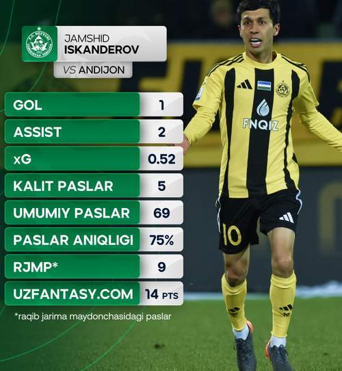 Достон Ҳамдамов («Пахтакор») – 2та
